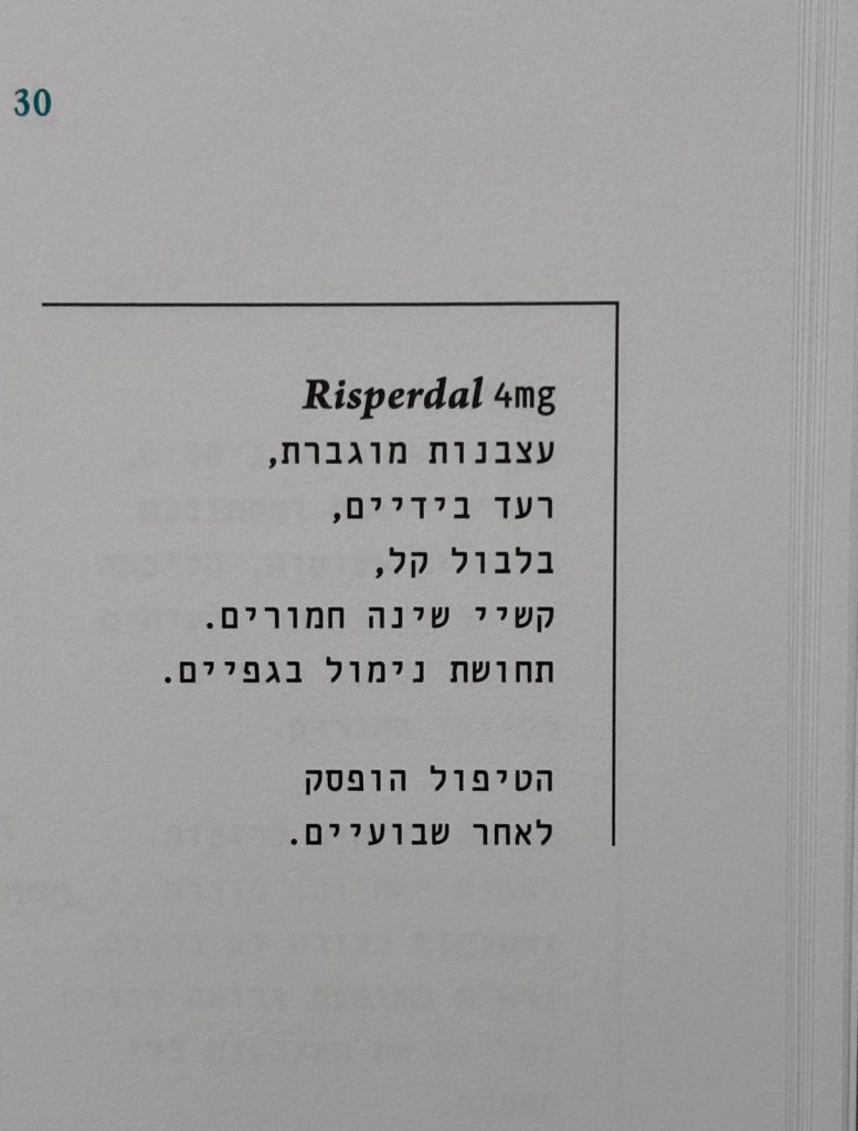 מאחרית הדבר שכתבה הפסיכולוגית רננה שטנגר אלרן (וטקסט היח”צ ) עולה שמדובר בטקסט אוטוביוגרפי. בכך סבג מצטרפת לכותבים ויוצרים המשתמשים בחוויה אישית של משבר או מצב נפשי מאתגר באופן קונקרטי. בין הדוגמאות הבולטות ספר השירה Odes to Lithium של שירה ארליכמן האמריקאית שראה אור ב 2019 ובו היא כותבת (האהבה) על התרופות להפרעה הדו-קוטבית ממנה היא סובלת לצד רישומים. הספר התקבל בחום על ידי ביקורת וקוראים, חלק מהפתיחות החדשה בה מתייחסים למצבים נפשים מאתגרים שלפעמים הופכת המידה מסוימת לפארסה כשסלבריטאים למיניהם – מהזמרת Sia ועד אילון מאסק וגרטה תונברג מתהדרים בלהיות “על הרצף”. התקדימים לעבודה של סבג רבים, החל מהשירה של סילביה פלאת ב”בפעמון הזכוכית”, כתבים של אנטואן ארטו, מחזות של שרה קיין ועוד. חלק מאלו מופיעים תחת “מקורות, השראות ופראפרזות” בסוף הספר. ברגעים מסוימים הטקסט מזכיר את “דולי סיטי” של אורלי קסטל בלום, ספר שהישירות בה דיבר על נמצב פשי הפכה אותו לרגע ספרותי מטלטל כשיצא ב 1993. בשל האופי החזותי המובהק של הספר מעניין לחשוב גם על אמניות שמשברים נפשיים עיצבו ומוספרים בעבודתן החל ביאיוי קוסמה, דרך נאן גולדין ועד טרייסי אמין. העבודה של סבג מובחנת היטב. המקצב החזותי שהיא יוצרת בין השחור לבן והירוק ומבני הטקסט המשתנה מענין.