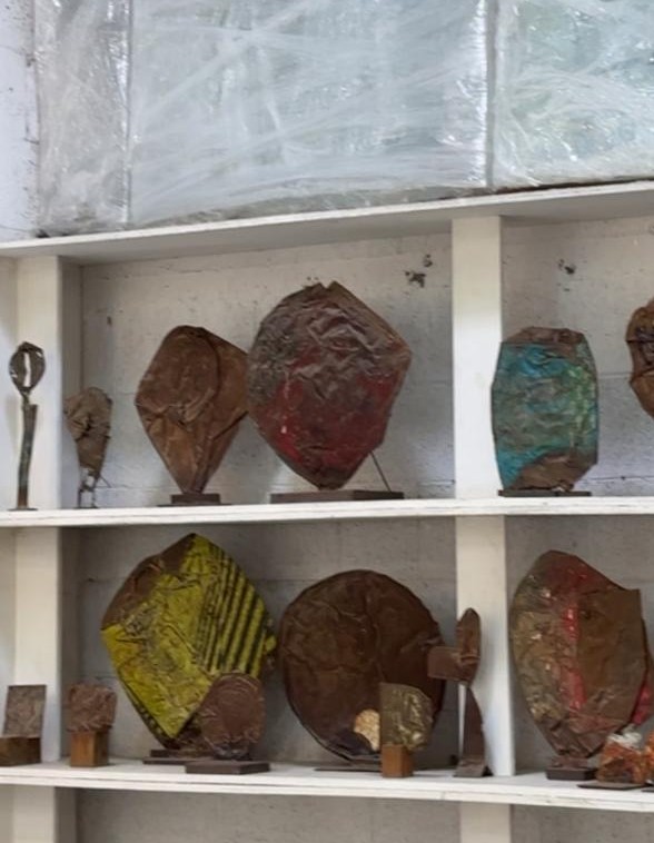 The Shami Atelier is a fascinating space that preserves the spirit of Yehial Shemi’s art. In its front yard large iron sculptures dot the landscape as if the place were still an active studio. Inside the enclosed building, alongside large and small metal sculptures (excellent ones), there are early stone sculptures and Shemi’s painting studio. Shemi’s uncompromising modernism, his insistence on the truth of materials, a belief in the existence of truth itself, is still a strong pressence.