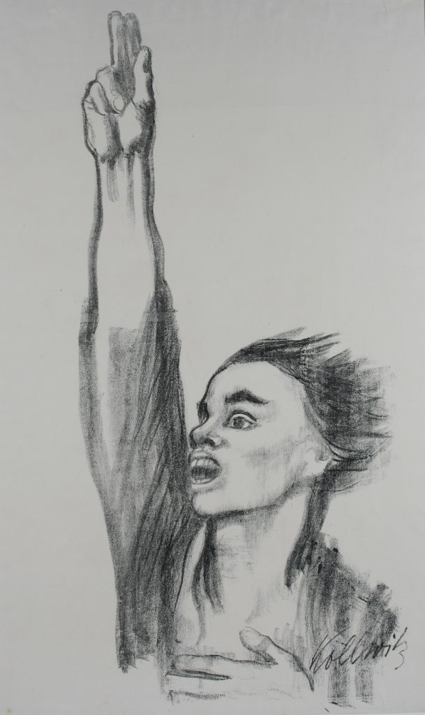 Kollwitz, a non-Jew, stood firmly alongside her Jewish colleagues and was among the few artists who attended the funeral of Max Liebermann—the eminent Jewish artist who, until the Nazi rise to power, headed the Berlin Academy of Arts and served as president of the board of the Jewish Museum. She is presented here alongside Ernst Barlach. Both artists’ works are deeply expressive and imbued with humanistic compassion. Several of Kollwitz’s images have become identified with peace and protest movements from the 1920s to the present. The gallery devoted to lithographs issued in inexpensive editions during the First World War traces the arc from the early surge of nationalism to the sobering realization of the war’s ultimate horror.