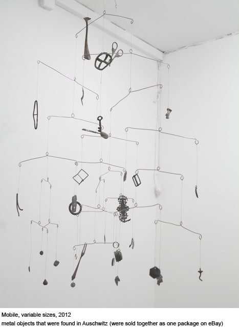 עבודה אחרי עבודה מנכיחה את האופן בו זוועת העבר שולחות אצבעות להווה. “מובייל” היא עבודה שנעשתה מחפצי מתכת שנמצאו באושוויץ ונמכרו ב – eBay . בקומת הכניסה בנה ישראלי במה ועליה פיגומים המחזיקים ציורי נוף שלווים של הריין, שצוירו בתקופת המלחמה על ידי ציירים