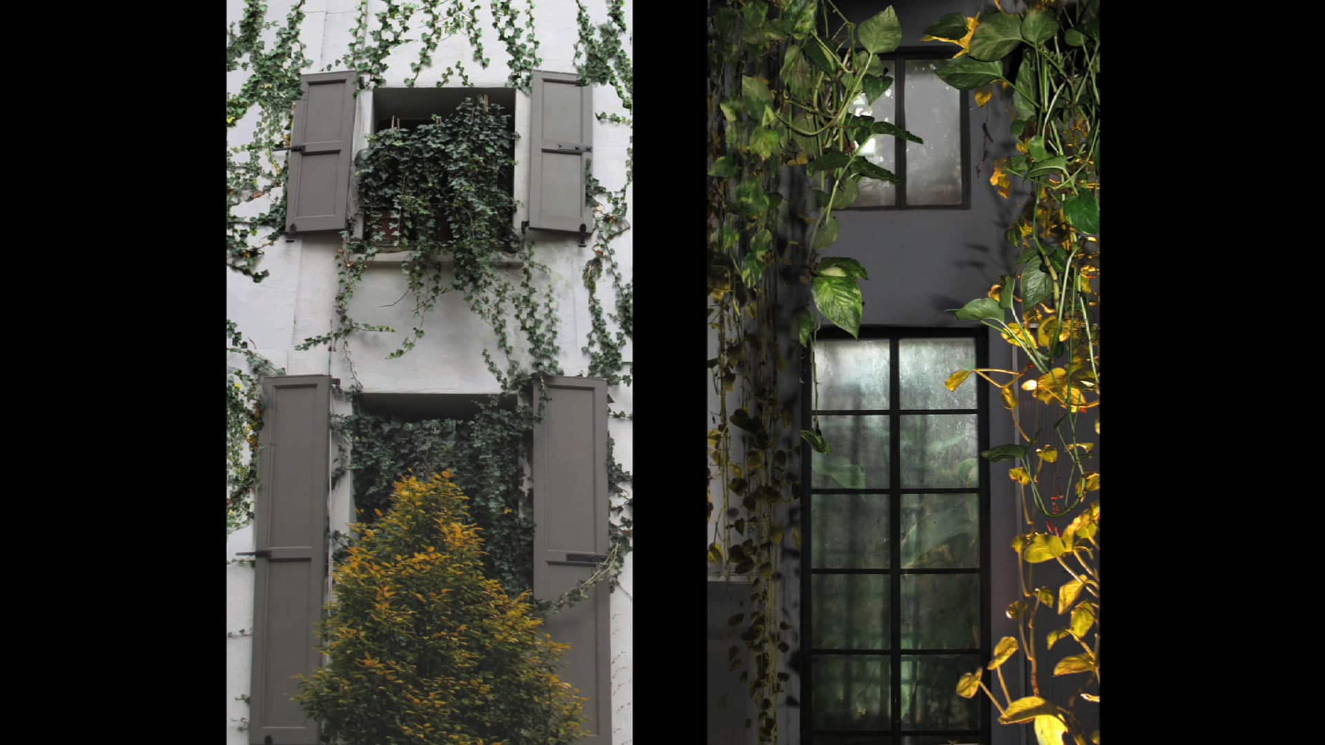 Dana Levy’s video Abandoning depicts vegetation growing wild, covering buildings and challenging the cultural environment. It is similar to a work she created several years ago (which was subject to political interpretations). The current work features the covered windows of an apartment owned by a gardener. After he died, the automatic irrigation system continued to operate, leading to flourishing vegetation gone wild, throwing off all restraint, as if granted instantaneous freedom but aware of its short life.