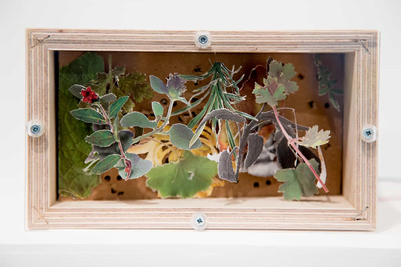אירית חמו מציעה טבע קטן, נייד ו”חי”. מאוורר קטן יוצר אוושה במגזרות צמחים בקופסת עץ קטנה, כמו תמצית כל הזיכרונות שאפשר למצוא בצמחים מיובשים שהונחו ונשכחו בדפי ספר. זיכרון טבע שמתרחק וצולל לתת מודע הוא התחושה שיוצרות העבודות הקטנות של טל אמיתי-לביא העשויות סודה לשתייה. אלו תצורות שמעלות על הדעת צמחים לא ספציפיים ,רעיון של צמחים יותר מאשר . הסחלבים של דוד עדיקא, נושא שהוא שב ועוסק בו בשנים האחרונות מנכיחים את השימוש בטבע להתהדרות, את הבחירה בטבע רחוק כסמל של אנינות. בהדפס בשחור ואדום הסחלבים הם סכמה בלבד, סימן ריק לטבע רחוק . ההחלפה של טבע בסימן טבע , התשוקה לשלוט בו ולהעצים את רושם הטבע תוך התעמרות בדבר עצמו עומד במוקד הצילומים של עינת אמיר שכותרם Greenwash מתיחסת לפרקטיס של תעתעועים ופרדוכסים שנוצרים כאשר תחת מסווה שימור או שיקום טבע הורסים וממסחרים אותו.