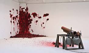 ההקשר של שואה ורצח מתחזק כשנשמעים קולות יריה בחלל צמוד לאטריום . מוצג שם Shooting into the Corner, 2008-2009, תותח היורה על הקיר כדורי שעווה אדומים כך שהחדר נראה כאחרי טבח מחריד. כן, אפשר לחשוב על ציורי הטיפטוף של גקסון פולק, כמו שמציע בקטלוג האוצר נורמן רוזנטל .אבל ההקשר חלש להפליא מול חדר מותז באדום דם בברלין .