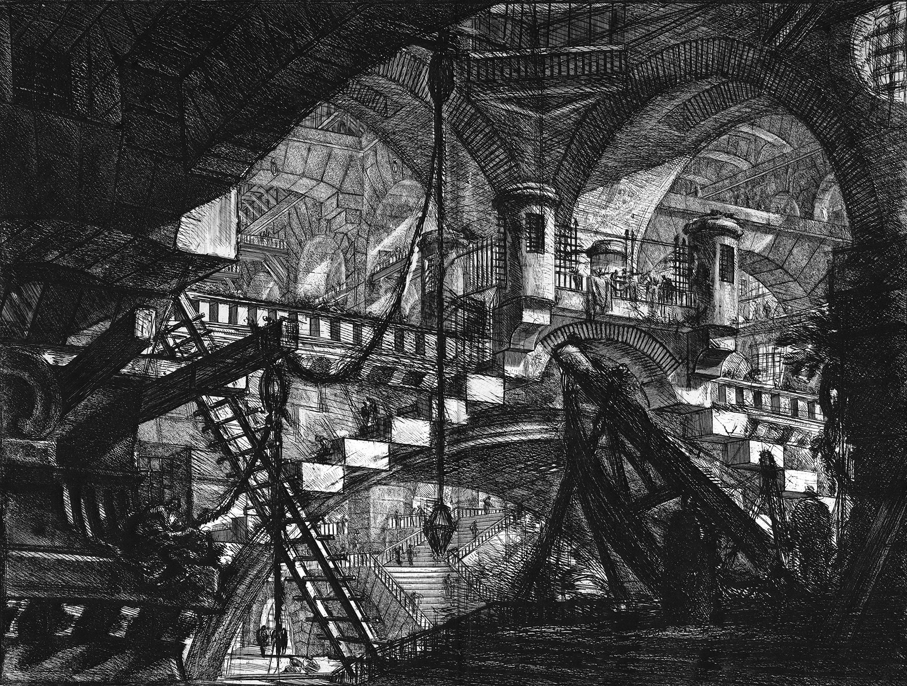 In Piranesi’s nightmarish world, prisons are grotesque theatres of torture, a crude demonstration of the power of architecture as the epitome of culture as compared to the weakness of those imprisoned.